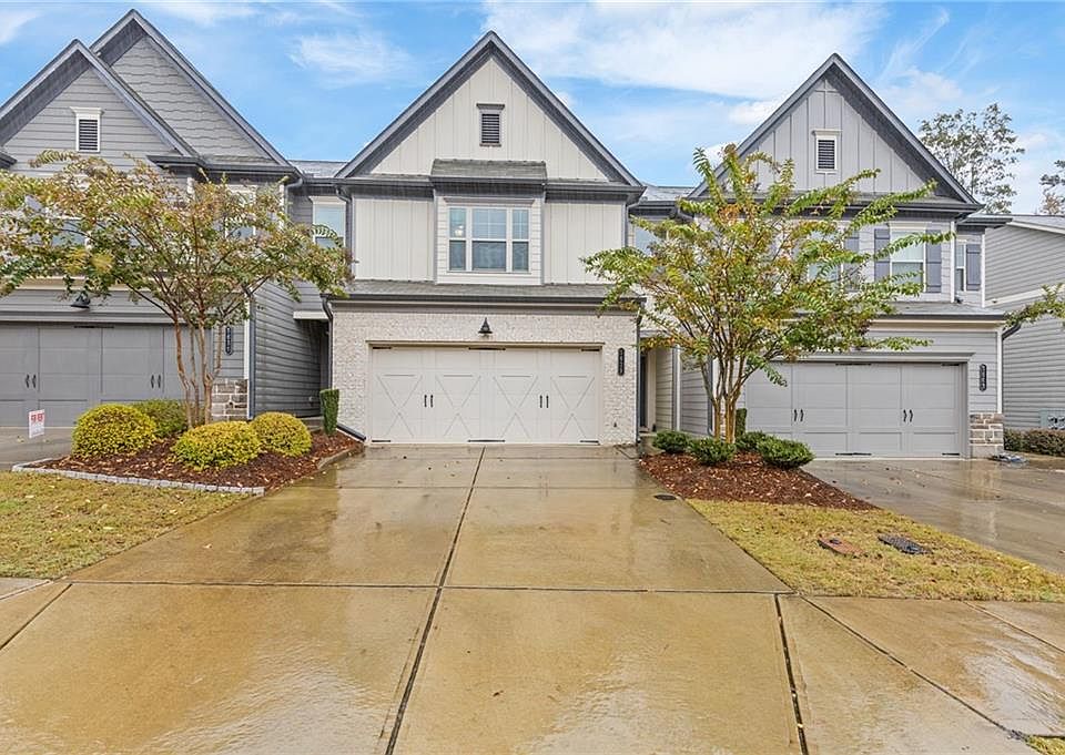 Welcome to 5639 Parkview Lane — a beautifully maintained, like-new 3-bedroom, 2.5-bath craftsman-style townhome in the highly desirable Village at East Main community, just minutes from Downtown Flowery Branch and Lake Lanier. This stylish home offers an inviting open-concept floor plan featuring a gourmet kitchen with white cabinetry, stone countertops, a large island with shiplap accents, stainless steel appliances (including refrigerator), and a spacious walk-in pantry. The kitchen flows seamlessly into the dining area and cozy living room, complete with upgraded flooring, designer lighting, and a charming shiplap fireplace. Upstairs, the oversized primary suite features a tray ceiling, space for a sitting area, a large walk-in closet, and a private en-suite bath. With large secondary bedrooms just steps away, as well as the convenient upstairs laundry, the second level of the home is complete with comfort in mind. Enjoy outdoor living in your private backyard with an extended covered patio —perfect for relaxing or entertaining. The home also includes an attached garage and an extended driveway for additional parking. Impeccably maintained by the original owner and showcasing upgrades throughout, this home stands out for its quality and value compared to new construction nearby. Located approximately 1.5 miles from Safe Harbor Marina and just minutes from parks, restaurants, shopping, and I-985, this move-in-ready home combines style, comfort, and convenience in one perfect package.