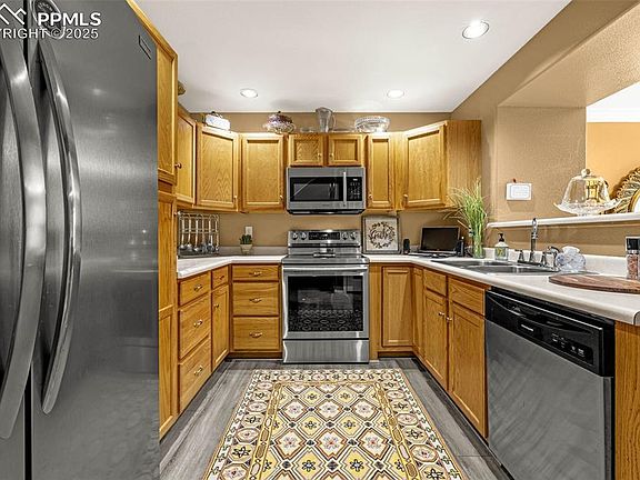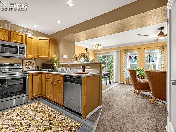 Discover the perfect blend of comfort and convenience in this charming 3-bedroom, 3-bath townhome with over 1,600 square feet of finished living space. Located in the lovely Sundown Villas community, you’ll appreciate the mature trees, well-maintained grounds, and the peaceful setting that backs to a grassy open space. Step inside to a bright and airy entry with tall ceilings, then towards the cozy living room with a gas fireplace. The open layout flows seamlessly into the dining area and kitchen, complete with stainless steel appliances, and a breakfast bar that’s ideal for casual dining or entertaining. A private patio extends your living space outdoors, perfect for relaxing or enjoying the greenbelt view. Upstairs, the spacious primary suite features vaulted ceilings, a walk-in closet, and an updated en-suite bathroom with stylish finishes. A second bedroom, full bath, and laundry space complete the upper level. The fully finished basement offers even more versatility with a third bedroom, a flexible bonus room, another full bath, and extra storage. Additional highlights include central A/C, an attached 1-car garage, and driveway parking. With quick access to the Powers Corridor, shopping, dining, and parks, this home offers both a tranquil retreat and unbeatable location. Move-in ready and waiting for its next chapter, come see why Sundown Villas is such a special place to call home.