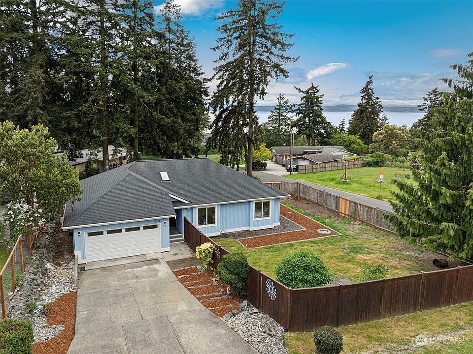 Enjoy breathtaking Puget Sound & Olympic views from the expansive south-facing porch at this island retreat. Primary bedroom is complete with spacious walk-in closet, vaulted ceilings, & beautiful tiled walk-in shower. Unwind by the cozy wood fireplace & vaulted ceilings as you're treated to ships sailing by in the natural forest surroundings. 2 car garage includes workshop space & overhead storage loft. This home features new appliances, new carpeting, & new Timber Tech decking for both style & durability. Fenced front yard offers privacy & space for pets to roam freely. 5-min north of Freeland, 18-min drive from the ferry & steps from Island Transit. Easy access to Bush Point public beach/boat launch. Welcome to your island sanctuary!