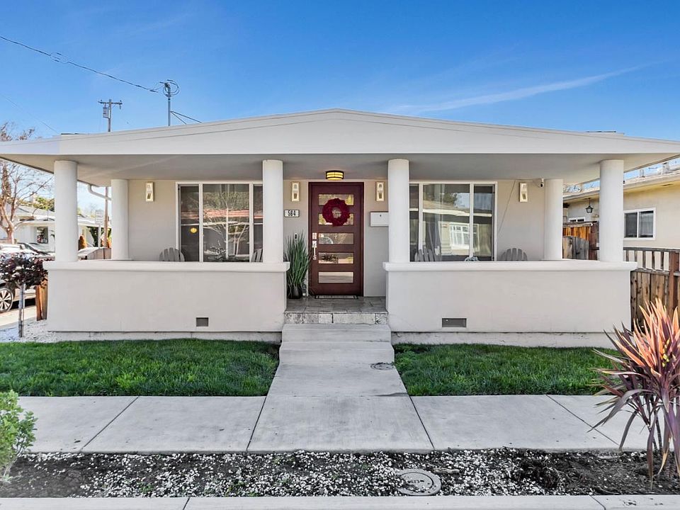 The DESIGNER KITCHEN is a chefs dream, boasting a premium Thor gas range, commercial-grade vent hood, built-in wine & beverage fridge, sleek stainless steel appliances, & a spacious island. Elegant HARDWOOD floors & recessed lighting enhance the open, airy feel of the home. The luxuriously remodeled bathrooms offer a spa-like retreat, w/ the primary bathroom showcasing a frameless glass shower door & designer tile work. Custom-built closets provide ample storage, while SunTunnels bring in even more NATURAL LIGHT, creating a bright & inviting atmosphere. A charming front porch offers the perfect spot to relax & enjoy sunny afternoons, adding to the homes welcoming curb appeal. Additional upgrades include an automatic driveway gate, recently UPDATED ROOF, & REBUILT FOUNDATION for added peace of mind. Excellent SANTA CLARA SCHOOLS! Nestled in a highly desirable, walkable neighborhood, this home is just steps from local eateries, cafes, & minutes from Santa Clara University, the tech hub, & easy freeway access. A perfect blend of style, convenience, & modern living!