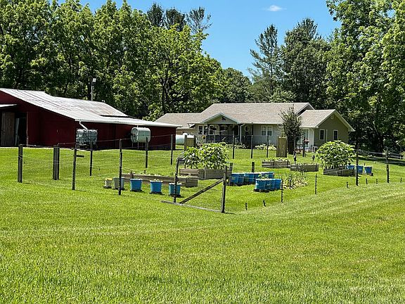 Mini farm with 40 +/- Acs. and lots of privacy. Property includes new roof, generac generator, large barn, pond, UG electric, automatic gates for easy access, stadium lights at entrance, 2 septic systems, new well and cistern, new wiring, new counter,, newer appliances, full basement, walnut trees, chestnut trees, and lots more. approximately 1/2 wooded and 1/2 fields.Nat. gas Available