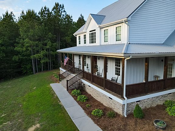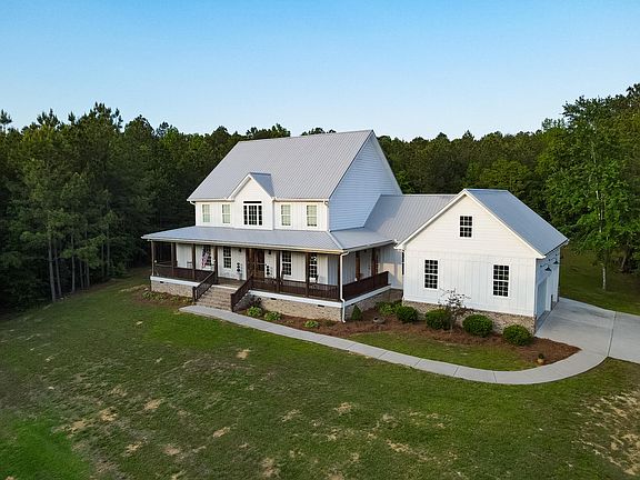 Stunning Modern Farmhouse situated on 4.68-acres! From the expansive front porch to the impressive entryway, you'll be captivated the moment you arrive. This home features elegant, high-end finishes throughout, including stainless steel appliances and whitewashed pine floors. The open-concept kitchen /living area is perfect for entertaining or relaxing by the amazing fireplace, complemented by a separate dining room, spacious office and over-sized laundry room. The main level main suite offers a peaceful retreat with custom barn doors, double vanities, a soaking tub, tiled shower, and a generous walk-in closet. Upstairs , large recreation room and 2 beautifully designed bedroom suites. Outside, relax on the covered back porch or take a dip in the amazing saltwater pool. Must See!!