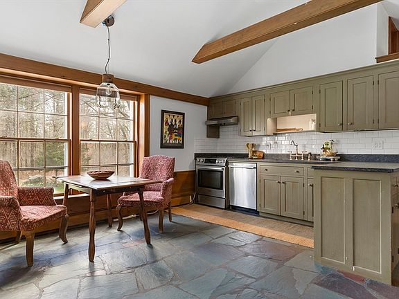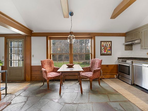 This incredibly special home has been maintained w/loving care by Sellers since 2011. South-facing patio opens from kitchen and overlooks sprawling lawn on pristine 3acre lot w/koi pond, food gardens & chicken coop. Enchanting private forest trails invite morning meditations or walks w/dog off-leash. Exceptional bones, 5BR septic, new gas furnace 2017 & floor to ceiling insulation make this home a worthy canvas w/a wide-range of opportunity. 2nd level has been re-imagined to suit a modern family, courtesy of the seasoned eye and professional vision of a prominent local architect specializing in updating older homes. The full architectural renderings model-out an option to vault ceilings while retaining roofline to reduce cost. This renovation would transform 2nd flr, creating 2 lofted BRs, complete w/primary en suite baths & walk-in closets. Architect also designed an accessory dwelling unit (ADU) positioned above garage which offers lifestyle versatility and/or investment opportunity.