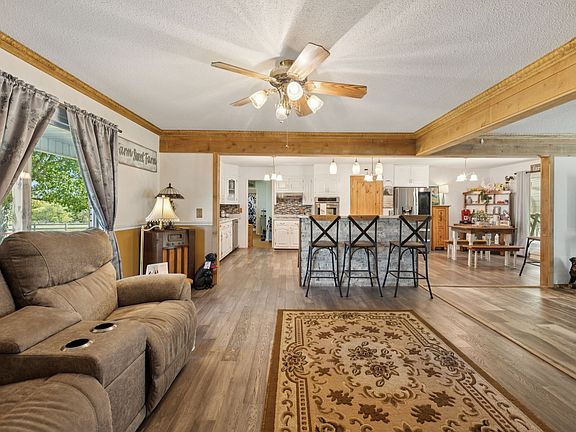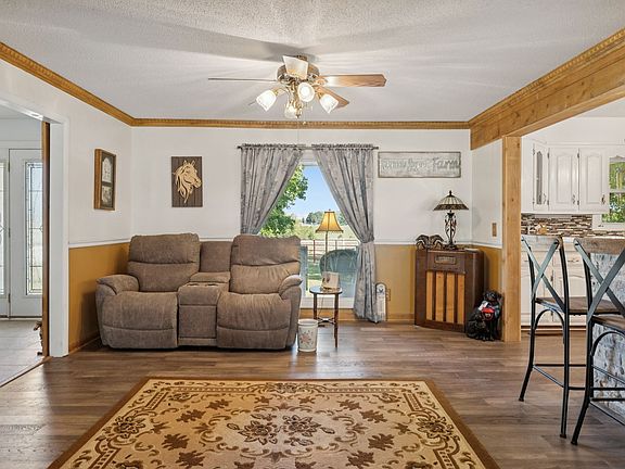 Bring your horses and enjoy country living on this 15.73 acre property complete with two barns, fenced pasture, and plenty of room to spread out. The main barn offers 8 stalls, a tack room, hay storage, and full water/electric, while the smaller barn features 4 stalls with water and electric as well. A horse run-in and cross fencing make this property ready for your livestock. The 3 bedroom, 2 bath home includes an office with a private entry and ramp, LVP flooring in the living room, laminate throughout the rest of the home, and updated systems for peace of mind. Recent improvements include a tin roof (2023), HVAC (approx. 2023), new sewer and field lines (2024), and structural reinforcement with flooring by TFS (2018). Other features include a 1-car garage, security cameras, and charming country touches.This property blends comfortable living with fully equipped equestrian facilities—perfect for anyone seeking a hobby farm or working horse setup.