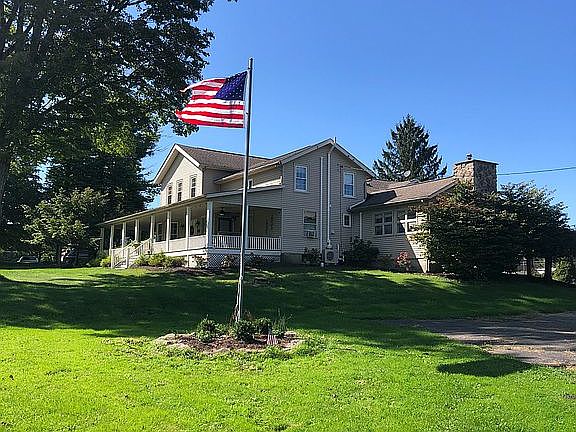 This 1824 farmhouse boasting a wrap around porch sits on 3.64 acres of land on top of Jones Rd in Vestal. It gives the feeling of being in the country with gorgeous views, but takes less than 5 minutes to get into town. A spacious mother-in-law suite with full kitchen, large bedroom, living area, bath and laundry is the perfect place for short or long-term guests. This space has worked both as additional housing, and also as extra living space for single family. The "apartment" side has its own entrance at both the front and back of the house, and is outfitted with a wood burning pizza oven! It also has a gas fireplace and patio off the back. Three of the four bedrooms are en suites, with walk in closets and full baths. Second floor master bath has been completely remodeled with his-and-hers shower heads, and two walk-in closets. Balcony off the master. Second floor sunroom is the perfect place to watch the sunrise, and provides a more private living space. Two other bedrooms, two full baths and laundry room round out the second floor. Bedrooms are all generous size. The "main house" kitchen was remodeled with light cabinets and granite countertops. All stainless steel appliances, including a pebble ice machine. This is open to breakfast nook, dining room and main living room. Dining room holds a 110" dining table and looks over second gas fireplace. Just beyond the arched double doors leading to the back yard is the study that has also been updated with a full wall of built-ins. Approximately 550 square feet of additional space has been renovated in the basement. Two unfinished storage rooms in the basement. Cellar doors provide easy access for storage. Off of the kitchen towards the back is a screened in porch. This leads out to a composite deck, and in-ground heated salt water pool. Pool is fenced in with concrete decking, and shed to hold pool toys and equipment. A detached garage at the edge of the property near the road. Very large barn from the original home sits to the right of the home with additional parking. Ductless mini splits were installed within the last 3 years. **Will happily compensate buyers agent full 3%**