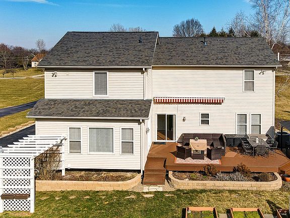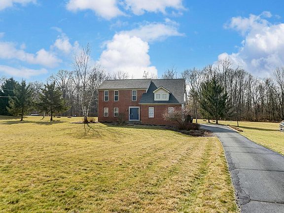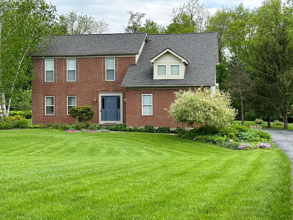 Price Improvement! Pristine home with classic styling on 1.6+ acres., 4 beds, 2.5-bath with 3 car garage, 2736 Sq. Ft. living space, finished basement & ample storage. First floor boasts 9 ft ceilings, beautiful white trim & hickory flooring. Updated kitchen includes a breakfast bar, island, brand new matte SS appliances, corian counters, tile backsplash & a walk-in pantry. Family room hosts a gas log fireplace, custom window blinds throughout & home office/den. New roof 2020, new Trex deck & new hot tub overlooks a sprawling yard w/beautiful perennial gardens. Additional highlights include a master bedroom with split HVAC, updated baths & fresh paint throughout. Close to Delaware, Polaris, I71, 23 & 36/37. Meticulously maintained home blends comfort & style.
