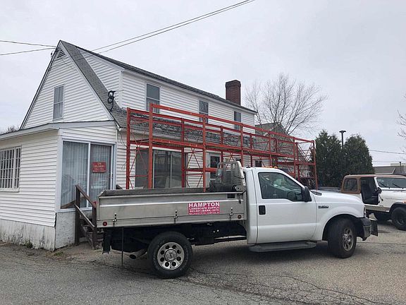 Real estate only. Office area with restroom and a two bay garage with an 8x8 door and a 10x10 door. Garage includes a lift. Natural gas heater in office space and garage. Residential space with one bed, one bath, living room, office and kitchen w dishwasher, refrigerator,electric range, and microwave. Hardwood floors throughout the residential space. Electric baseboard heating. Also washer and dryer and a deck. JUST UPDATED APARTMENT WITH NEW FURNACE, WINDOWS, DOORS AND A ROOF. Buyer will be asked to agree not to have a landscaping supply business at this location as a non-compete clause.