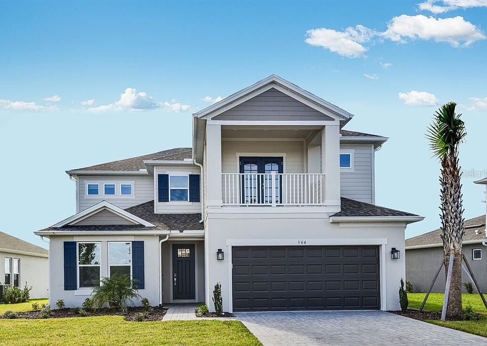 What's Special: Pond View | 1st Floor Guest Bedroom | Game Room. New Construction – Ready Now! Built by Taylor Morrison, America’s Most Trusted Homebuilder. Welcome to the Barbados at 564 Moon Shell Circle in Ardisia Park. This stunning new home offers flexible living spaces designed for the way you live. Step inside and be greeted by graceful archways framing the study and formal dining area, leading into the open great room and gourmet kitchen. The kitchen shines with upgraded cabinets, elegant crown molding, an apron-front sink, and a large center island perfect for casual dining. Sliding glass doors open to a spacious covered lanai, while the backyard offers a serene pond view and plenty of room to enjoy the outdoors. Upstairs, you’ll find a generous game room, three secondary bedrooms, including one with a charming bay window, and two full baths, one with a convenient jack-and-jill layout. The luxurious primary suite features a private walk-out balcony and a spa-inspired bath with a garden tub for ultimate relaxation. Enjoy an array of planned amenities, including a clubhouse with fitness center, gathering space, and kitchen, plus a resort-style pool, cabana, pickleball courts, flex lawns, playground, dog park, National Wildlife Federation Monarch Butterfly Garden, and scenic walking paths throughout the neighborhood. Additional Highlights Include: Gourmet kitchen, downstairs bedroom in place of study, full bathroom in place of powder room, shower in place of tub at downstairs bath, 8' interior doors, study in place of flex, tray ceiling primary suite, game room, and study. MLS#O6346009