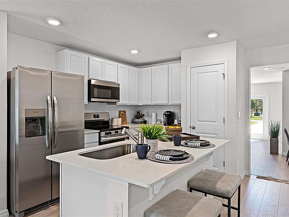 Under Construction. The Stratford townhome in Preston Cove offers 1,488 sq ft, 3 bedrooms, 2.5 baths, a 2-car garage, and concrete construction. The end unit layout includes an open concept dining area, living room, kitchen with stainless steel appliances, upgraded countertops, and pantry. Upstairs features 3 bedrooms, 2 baths, and a laundry room. Home includes modern details and smart home technology. Contact for more information. *Photos are of similar model but not that of exact house. Pictures, photographs, colors, features, and sizes are for illustration purposes only and will vary from the homes as built. Home and community information including pricing, included features, terms, availability and amenities are subject to change and prior sale at any time without notice or obligation. Please note that no representations or warranties are made regarding school districts or school assignments; you should conduct your own investigation regarding current and future schools and school boundaries.*