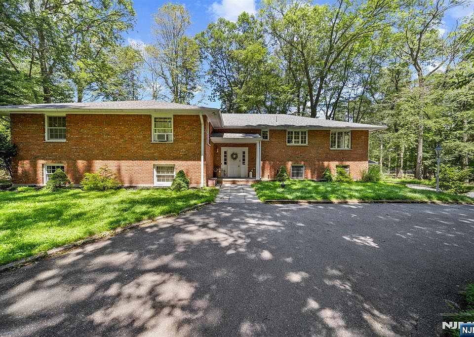 Fantastic Value in Franklin Lakes! Set on 1.7 private, wooded acres, this 4,500+ sq. ft. all-brick raised ranch offers incredible space, solid construction, and privacy in one of Bergen County's most sought-after communities. From the moment you arrive, the home's inviting presence and generous proportions capture your attention.Step inside to a spacious layout designed for both comfort and entertaining. The oversized living room, complete with a wood-burning fireplace, flows seamlessly to the formal dining room and modern eat-in kitchen featuring granite countertops, center island and stainless steel appliances. Three large bedrooms include a primary suite with two double closets, a walk-in closet, and a private bath—your personal retreat! A warm and inviting den with its own fireplace and custom built-ins provides the perfect space for relaxation or for remote work or study.The walk-out lower level is perfect for entertaining or multi generational living. This space offers a family room with a wood-burning fireplace, built-in wet bar, office, full bath with sauna—and French doors to the back patio. Hardwood floors, three fireplaces, and a three-car attached garage add both charm and convenience. A rare opportunity to customize and create your dream home today!