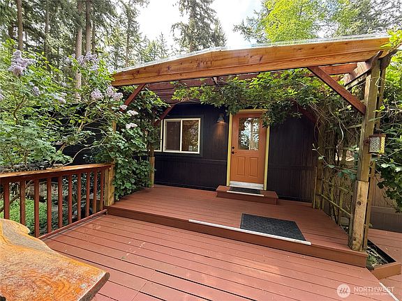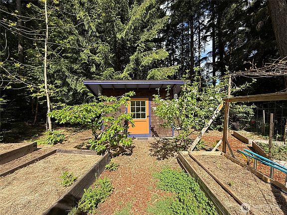 Nestled among the cedars just one lot from the shoreline lies a very special 3BD/2BA retreat. Situated on 1.5 acres of mature forest near Eastsound is a home with nature paths, a pond, water feature, garden & orchard. This private & gated oasis features multiple outbuildings, including a music studio, meditation library, workshop/carport, garden shed & water tanks with pump for gardening. Beautiful engineered hickory flooring, knotty pine interior doors, pine moldings & trim bring warmth & richness to the homes interior. Expansive decks allow appreciation of nature to its fullest. From the 40' deck built atop the workshop you will enjoy views of Sucia Island by day and stargazing at night. New roof 2022. Deeded access to cliff/shoreline.