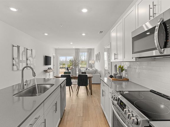 The townhome features 3 spacious bedrooms and 3 bathrooms. The open-concept living area offers plenty of natural light, creating a warm and inviting atmosphere. The modern kitchen is equipped with ample cabinet space and flows seamlessly into the dining and living areas, perfect for everyday living and entertaining.