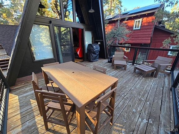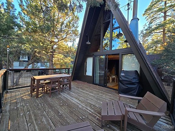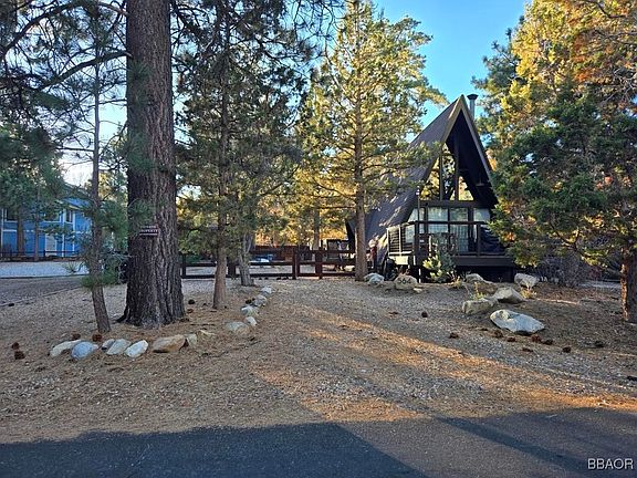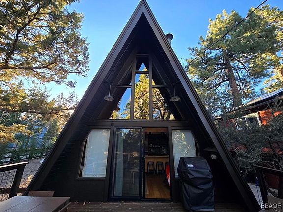 This is one A-Frame you don't want to miss! Has been completely redone, giving a nod to the rustic mountain setting, while also having a modern feeling. The living room has a freestanding fireplace and opens up to the large front deck. High vaulted ceilings allow for tons of natural light to come in through the floor to ceiling windows. The kitchen combines functionality and style and has a movable island with breakfast bar. Downstairs bedroom has an on-suite half bath and access to backyard. Upstairs you will find the loft, with a seating area on one side overlooking the living room and a sleeping area on the other. This home has a 6,125sf lot so there's plenty of room for parking. Property is fenced with 2 separate areas if you need to keep the pets contained and the other has a seating area and room for outdoor games. Just a quick walk down the street to local restaurant/bar and convenience store and only a 10 minute drive into town.