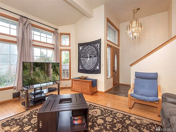 Open and bright floor plan 4 bedrooms and 2 full bathrooms. Eat in kitchen features granite slab counter tops, cherry cabinets, SS appliances, tiled floors and large island. Directly off the kitchen/dining room walk out onto a large and private covered deck. Warm and cozy living room w/ wood burning fireplace and hardwood floors. Down the stairs you will find the all important recreation room. The two car garage provides off street parking w/ more parking in the driveway.