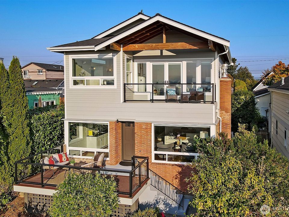 Enjoy quintessential PNW living w/jaw-dropping panoramic Olympic Mountains and Sound views! Abundant light & views abound throughout this remodeled (2017) West Seattle home. Open-concept floor plan on main, perfect for entertaining. Chef’s kitchen and living spaces complement a large bedroom & attached home office. Second floor features two ensuite bedrooms, with the primary boasting 180-degree views, a spa-like bath, walk-in closet, & stacked washer/dryer. Lower level with large rec-room, bathroom, & additional flex space (gym/office, etc.). Level backyard with ample patio, turf & mature landscaping. Patio has a large gazebo w/ openable roof to shield RVs, boats, or vehicles from the elements. Detached 1-car garage off paved alley. Enjoy!