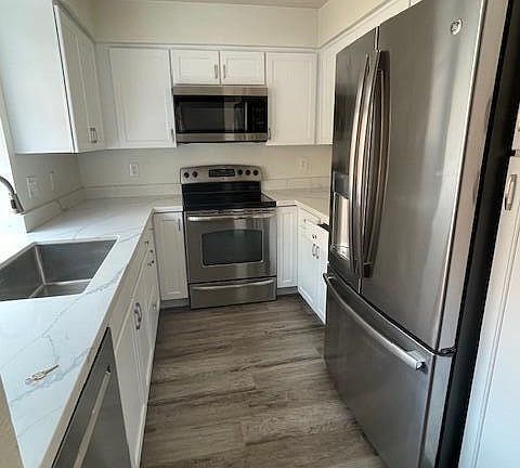 Newer interior paintNewer carpetWhite cabinetsWindow coveringsQuartz counter-topsSynthetic grassUpgraded kitchen
