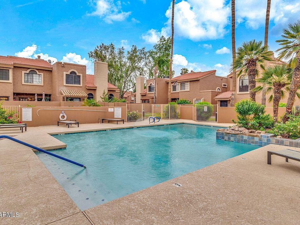 Nestled in a quiet community with a sparkling pool, this property provides resort-style living just minutes from the 101, shopping, dining, and golf. This would also be a great option as a lock and leave second home. The community allows rentals- 1 month minimum