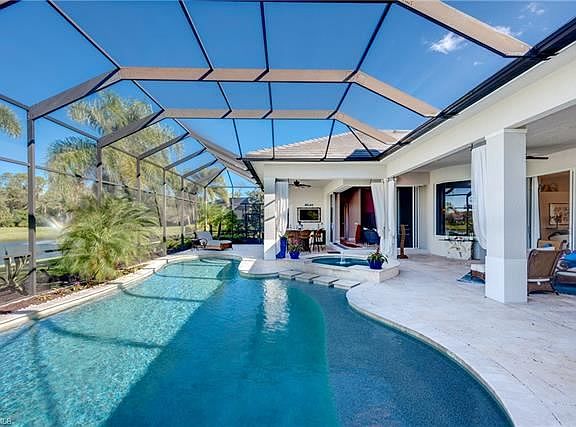 DARE TO COMPARE IN HAMMOCK ISLES- OVER $250,000 IN IMPROVEMENTS. Having ample room for entertaining; this remodeled one level four-bedroom plus den home awaits the most discerning buyer. From the moment you enter through the hand forged wrought iron custom door; you will experience and see beautiful and modern décor. Stainless steel appliances, marble floors, stunning light fixtures, large closets, plenty of storage, brand new roof and so much more. It truly is a fabulous place to live! Vineyards is a private country club that has two award winning 18 hole championship courses for all skills levels. There is a brand new 15,000 sq. ft wellness center and spa that will focus on your well being. From tennis to pickle ball to hundreds of activities annually, memberships are available. Relax in peaceful tranquility by water features, a lake, white flowing curtains and a redesigned private pool and spa. Enjoy the company of family and friends by your custom bar/grill and travertine paved and screened in lanai . Live the Vineyards lifestyle IN STYLE! The brand new and beautiful roof has been installed - come see! 2019-07-18