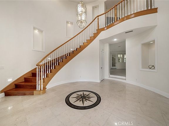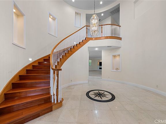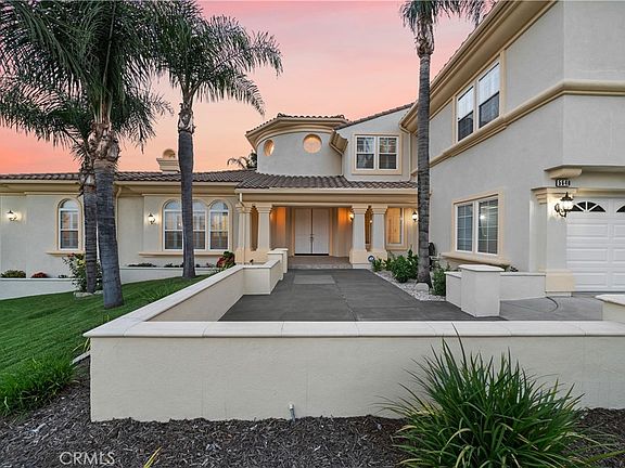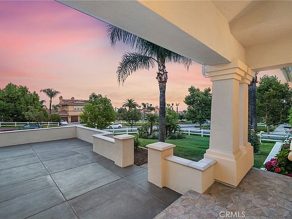 This remarkable residence offers a blend of opulence and practicality. 6 bedrooms and 5.5 baths, alongside a spacious 3-car garage with RV parking, it commands attention on its corner lot with meticulously manicured landscaping. Double doors welcome you into a grand foyer adorned with soaring ceilings, custom tile work, & recessed lighting. Formal living room, graced with a fireplace, and the elegant dining room, complete with crown molding, engineered hardwood floors, and plantation shutters, exude timeless sophistication. The heart of the home is the expansive, newly remodeled kitchen, with a large center island & high-end stainless steel appliances including a new double-oven, 5-burner cooktop, wine chiller, & built-in refrigerator. Quartz countertops with a full backsplash complement ample cabinetry, ensuring style and functionality. A spacious breakfast nook flows seamlessly into the large family room with custom tile flooring, a built-in media niche, and another fireplace. Conveniently located downstairs, a bedroom with a full bath and separate air conditioning unit offers ideal accommodations for overnight guests. Ascend the elegant circular stairway to discover the master retreat. A double-door entry welcomes you to a sanctuary featuring a raised-hearth fireplace, ceiling fan, and a private balcony offering breathtaking city-light views over the lush backyard. Master bathroom, recently remodeled to perfection, boasts dual sinks, a spacious marble soaking tub, and a stunning walk-in shower adorned with marble tiles & a sleek glass frameless door. Large walk-in closets complete with custom built-ins. Additional bedrooms boast a serene mountain view or captivating city lights scenery. One bedroom includes a full en-suite bath. A spacious loft area provides flexibility as either a bonus room or an additional bedroom, accommodating diverse lifestyle needs. Adding to its allure, the residence features a substantial ADU. With high ceilings, a living area, closets, a kitchenette, and a full bathroom. Engineered wood floors and a separate AC unit enhance its appeal and functionality. Backyard offers ample RV parking that currently doubles as a sports court, putting green with artificial turf, and a CA room-covered patio provides a shaded retreat for relaxation. Custom hardscaping with seating area creates inviting spaces. A highlight of the backyard is the built-in spa with a luxurious waterfall feature, amidst the tranquility of this remarkable property.