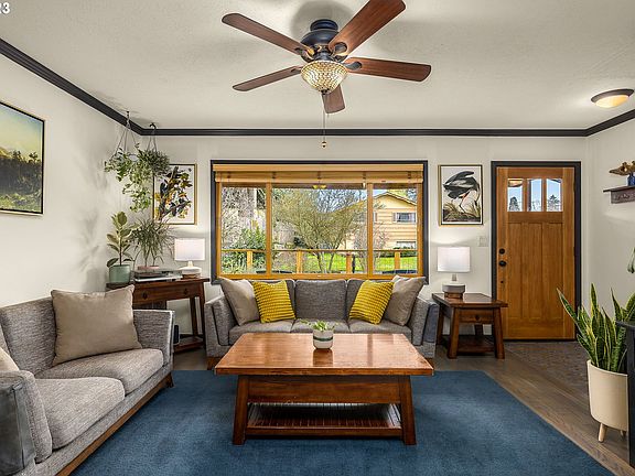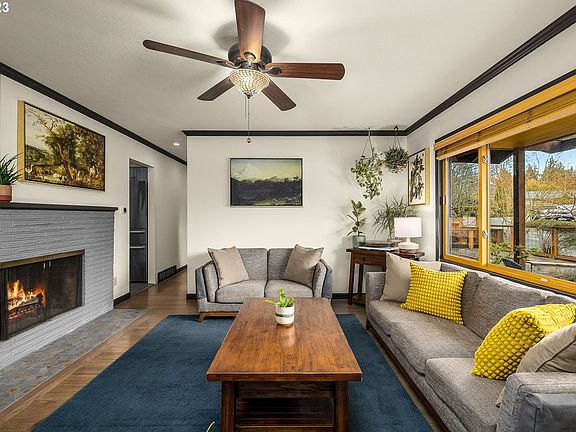 Dream (homes) come true with this stylishly remodeled mid-century Cully estate! Nestled in natural beauty, this property is brimming with thoughtful upgrades that make it shine inside and out. The home's main living space is centered by a wraparound Roman brick fireplace, and flooded with sunlight through a large picture window. The open dining area flows into an updated chef's kitchen with custom cabinetry and fresh stainless steel appliances. Framed sliding doors open onto a generously sized, fully covered patio, perfect for year-round entertainment. Down the hall, the primary bedroom glows with natural light and features an ensuite. Two additional bedrooms and a full bathroom round out the main level. Downstairs, the finished basement hosts a family room, fourth bedroom, office/flex room, and an additional full bath. The yard is a paradise of native plants, with professionally landscaped gardens, walking paths, water feature, and raised garden beds. The tastefully updated garage was previously used as a commercial kitchen and could be reimagined as the ultimate guest room/office/den, complete with a modern kitchen and appliances. This home is fully fenced for pets, making it the complete package. This is the Cully oasis you've been waiting for! [Home Energy Score = 6. HES Report at https://rpt.greenbuildingregistry.com/hes/OR10213440]
