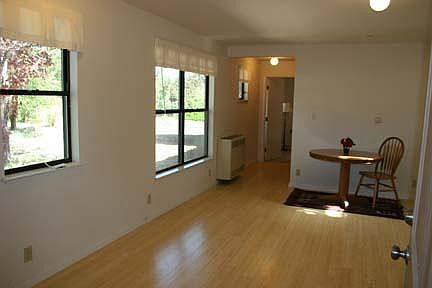 Like new upscale very clean, quiet, one bedroom private entry granny apartment. Vineyard views, 4 doors down from walking trail on 2.5 acre orchard property. Hardwood flooring, carpet, and vinyl flooring . Granite counter kitchen with disposal, dishwasher, microwave. High quality Electrolux stacked washer /dryer. Two skylights, private deck, own garden. Detached Garage with exceptional storage, garage door opener, shop potential. Easy access to Sebastopol, Graton and Forestville. Cat, 25lb. or less dog considered with deposit. Landlord lives on-site.