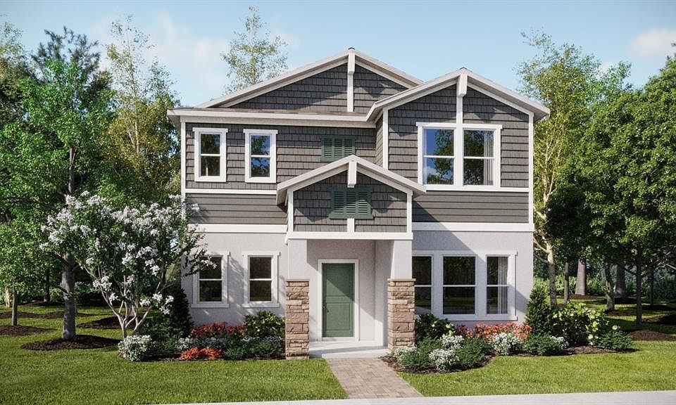 One or more photo(s) has been virtually staged. Under Construction. Welcome to the Aurora II! Upon entry into this stately two-story design is a den well-suited for at-home work. Down the foyer is a convenient open-concept layout which seamlessly melds the sun-drenched Great Room, modern kitchen and dining room together. A rear lanai provides relaxing outdoor space. Ideally situated on the top floor are all three bedrooms, including the tranquil owner’s suite with an adjoining bathroom and walk-in closet. Every home comes with Lennar’s Everything’s Included® promise, which includes all appliances as well as quartz countertops, blinds, and more in the price of your home. There are also home automation features such as keyless door locks and video doorbells in the Connected Home by Lennar®. Bridgewalk is one of the most anticipated new communities. At Bridgewalk, families can take advantage of the glorious resort-style swimming pool, extravagant clubhouse with a state of the art fitness center, playground, basketball & volleyball courts along with close proximity to Lake Ajay! What are you waiting for? Call and make an appt today.