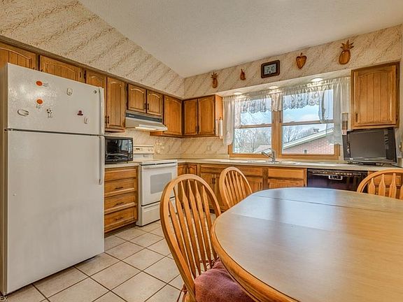 Spacious split with over 2800 square feet of living space with 4 bedrooms and 2 full baths and 2 half baths. This property also has an extra 24x24 oversized 2 car garage with heat and a 220 electric along with regular attached 2 car garage so a total of 4 car garage...great storage and work space for the toys!!! Eat in kitchen, dining room, living room and spacious family room with brick fireplace. Possible in-law set up or teen suite area. Deck, patio and porch. Opportunity awaits the buyer looking for space in house and extra garage/outbuilding.