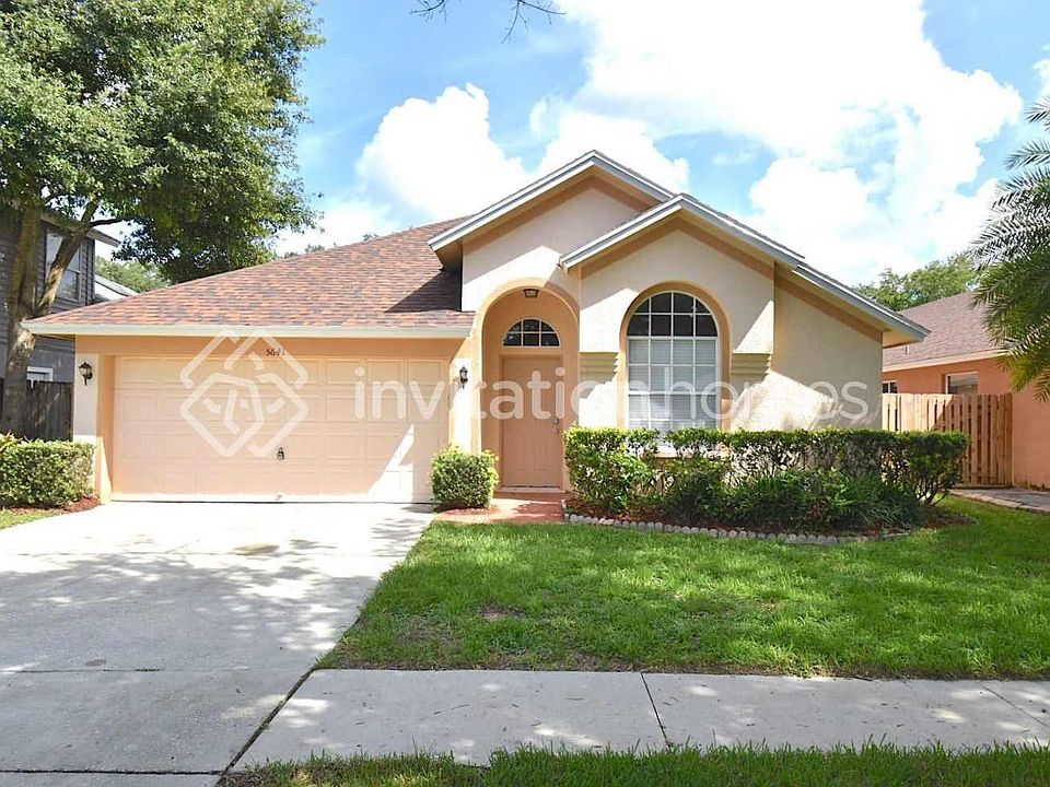 Home Features and Amenities: Air Conditioning, Covered Porch, Fenced Yard, Garage, Granite Countertops, Kitchen Island, Long Lease Terms, Luxury Vinyl Plank, Pet Friendly, Smart Home, Stainless Steel Appliances, Tile, W/D Hookups, and professionally managed by Invitation Homes.
