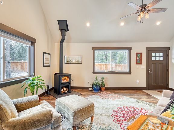 This entertainer's delight is a short drive to the Deschutes River, just 5 minutes SW of Sunriver square with quick access to Hwy 97 and Mt. Bachelor. The half acre lot at the corner of a rural two lane road and a rarely traveled unpaved road, provides privacy and a ton of amenities. Drop your gear and park your RV in one of the two RV spaces (one with full hook-ups).Relax in the new space for 5 hottub while your visiting 4 legged friends explore the fully fenced property. Enjoy the low maintenance landscaping, paved road and circular driveway with all the beautiful natural features around the property. Go on inside, take a load off and marvel at the luxurious finishes, including solid hickory cabinets in the kitchen and bathrooms, new cozy wood stove, and large river rock primary shower. The quality appliance package with the refrigerator is included. Mitsubishi splits provide heat in the winter and a cool breeze in the summer. There's even a cadet backup system! The bonus space upstairs provides a great venue for a gathering group of revelers or maybe an area of quiet reflection. All this with enough space for a non-conforming 3rd bedroom space and office! The options are endless, limited only by your imagination. No worries however, you can relax and get away, the primary suite is on the main level! The plentiful natural light flows through the open floor plan, and highlights the pristine condition of the home. Outbuildings include 8x12 storage/pump house building, plus 10x20 wood shop with work benches, shelves, AC and lots of outlets, as well as a 10x12 barn-roof garden shed with overhead storage and potting bench. All just minutes away from US forestlands, lakes, the Deschutes and many other rivers, Mt. Bachelor ski resort, and all the best Central Oregon has to offer! This is a fantastic primary home and would be a great investment property as well. This is not your neighbors' HOA, this is all yours! Quick, come see your next home!