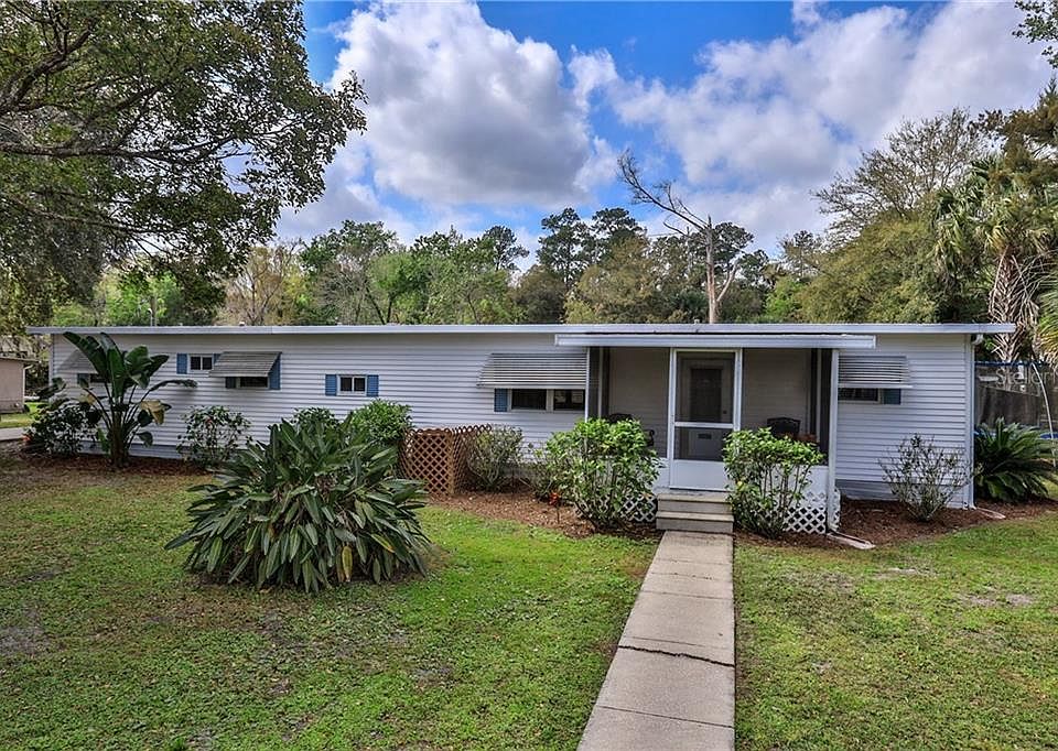 Looking for an affordable waterfront getaway? Look no further. Spacious 3 bedroom 2 bath manufactured home with a 19 x 11 living room on concrete bulk headed, navigable canal with access to the St. Johns River. This is tranquility at its best. The home has been updated from its original condition and sits on over a quarter acre with lush, mature landscaping. The property is entirely fenced with a gate across the driveway. There is a 12 X 25 carport, a 12 X 26 laundry and workshop, a 17 X 28 boathouse, 16 X 10 metal storage shed, 20 x 15 open patio with fire pit, 14 X 12 rear screen porch and a 12 X 8 front screen porch. There is a large wood dock that extends across part of the back of the property offering a wonderful seating area to view the canal, dock an additional boat or jet skis or just drop a line in and catch dinner. This little slice of paradise is perfect to unwind after a long week or to spend your retirement years. Won't last long. CASH ONLY