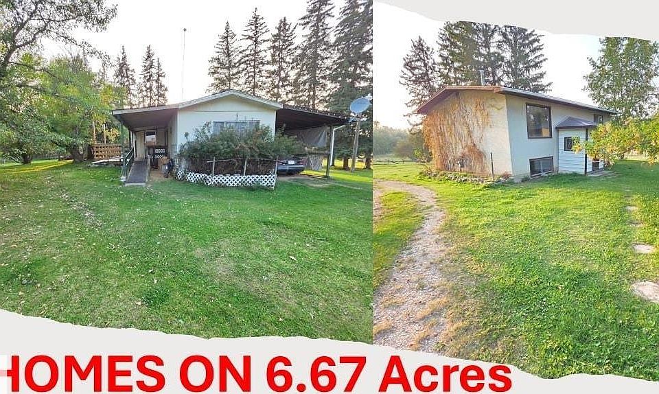 Rare Opportunity! 6.67 Acres with TWO Homes! This versatile property is perfect for multigenerational living or as for the savvy investor. The main residence is a bi-level home featuring NEW KITCHEN, New Bath, Recent shingles, 2 bedrooms and 1 full bath on the main floor, with a unfinished walkout basement offering potential for 3 additional bedrooms. The second residence is a 3 Bedroom 1.5 bath single-wide mobile home with Tandum carport. Each home has its own septic tank & field, and well, ensuring independent living. The property is fully fenced and cross-fenced, making it perfect for hobby farming or livestock. Additional features include two pole sheds, a large storage building, and beautifully landscaped grounds with mature trees and natural growth that provide privacy and charm. Conveniently located just 5 minutes from an elementary school, this acreage offers both functionality and tranquility. Don't miss your chance to own this unique property with endless potential!