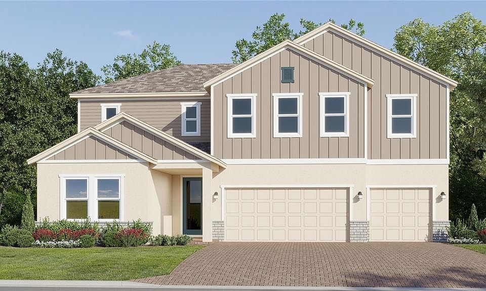 One or more photo(s) has been virtually staged. Under Construction. Welcome to the upscale two-story Symphony! There is a first-floor owner’s suite that offers a comfortable retreat with a full bathroom and walk-in closet. Near the front of the home off the foyer are a secondary bedroom and a flex space, ideal as an office or studio. An open-concept floorplan with easy access to a covered patio encourages simple indoor-outdoor living and entertaining. Three additional secondary bedrooms can be found on the second floor near a shared living space in the loft. Every home comes with Lennar’s Everything’s Included® promise, which includes all appliances as well as quartz countertops, blinds, and more in the price of your home. Springhead Lakes in Bridgewalk is one of the most anticipated new communities. At Bridgewalk, families can take advantage of the glorious resort-style swimming pool, extravagant clubhouse, with a state-of-the-art fitness center, playground, basketball & volleyball courts along with close proximity to Lake Ajay! What are you waiting for? Call and make an appt today.