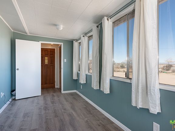 This Charming 2 bedroom 2 bath home sits on over 2 fenced acres. Also included Guest house with 1 bedroom, 1 bathroom, kitchen. This community has a peaceful vibe. Close to Yucca Valley, Joshua Tree, Pioneertown but far enough away to enjoy the mystic of the desert. The main house has been thoughtfully updated with new flooring, cabinets, appliances, paint, new roof on both house and guest house. INVESTORS! this is a great opportunity to purchase this charming desert retreat.