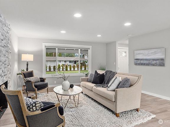 Fully remodeled 3bd+bonus Newport Hills Rambler. Location location location: Quiet street yet great walkscore: schools, shopping, parks all close. 2020 remodel - New kitchen with quiet close drawer/doors, Quartz counters, stainless LG appliances. Remodeled bathrooms with tile floors, surrounds, quartz, etc. Everything's been done: New roof, windows, furnace, water heater, garage doors & openers, electrical panel, plumbing, even a new front door & blown-in insulation. Inside you'll see all new doors & trim, new lighting & outlets, new plumbing & fixtures, newer engineered hardwoods, new carpet & fresh paint. Bonus could be 4th bedroom/home office. Level, fenced, private, awesome patio. Award winning Bellevue Schools. GR8 commuter locale.