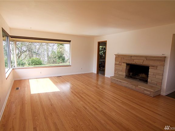 LOCATION! Impeccable mid-Century home with wonderful natural light is move in ready.Beautiful partial sound/mountain views. Landscaped private backyard sits against a greenbelt. Refinished hardwood floors. Fresh interior paint. Gas fireplace in great room. Separate basement entry door with potential M-In-Law. Large kitchen & dining room with covered patio. Tiled bath is spotless. Large 2 car garage. California closet storage. Desirable/quiet/established neighborhood. Walk down to Beach Drive.