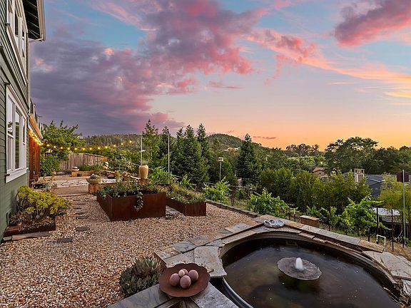 Spectacular views, serene privacy, and plenty of space. This 5-bedroom, 4-bathroom home offers 3,760 sq. ft. of thoughtfully designed living space on just under half an acre, with sweeping panoramic views of Annadel Park. Refined finishes inside and a backyard designed for relaxation and entertainment, featuring a beautiful patio, hobby vineyard, lush garden, bocce court, and serene pond. On the main level, the spacious primary suite opens to a deck with spectacular views perfect for a peaceful morning coffee or sunset unwind. The kitchen features GE Monogram stainless steel appliances and granite counters, flowing into a great room with tall ceilings, hardwood floors, and a cozy gas fireplace. There's a separate living space on the main level with its own fireplace and an adjacent dining room. The lower level includes a second en suite bedroom, three additional bedrooms, and a media/yoga/play room. There's a finished basement thoughtfully outfitted for home wine-making. Paid solar, updated HVAC system, 3 car garage. Step outside to enjoy a beautifully designed hardscape patio, a hobby vineyard, raised garden beds, a bocce court, and a tranquil pond. Located near great parks and in the highly-rated Rincon Valley School District with Austin Creek Elementary.