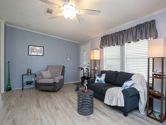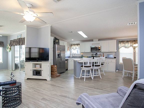 This beautiful 2 bedroom 2 bath is move in ready! This manufactured residence offers the perfect blend of comfort, functionality, and modern living. Step inside to discover a spacious and inviting layout designed to accommodate your lifestyle needs. Open-concept living space, lots of natural light. Kitchen equipped with stainless appliances, ample cabinet space with pantry and a breakfast nook perfect for casual dining. The master bedroom boasts an in-suite bathroom for added privacy and convenience. Whether it is your permanent or seasonal home you'll find plenty to love about this manufactured home. With its practical layout, modern amenities, and inviting atmosphere, this 2-bedroom, 2-bathroom residence offers the perfect place to create lasting memories. Welcome to the next chapter of your life - welcome home. Experience the Thesman Lifestyle at our active 55+ land lease community where luxury meets affordability. For over 40 years we have set a standard with world class amenities and year-round activities. Our community has 2 beautiful clubhouses including ballroom, library with computers and individual rooms for cards, billiards, arts and crafts, and a fully equipped fitness center. Enjoy outdoor amenities heated pool and spas, lake for fishing, BBQ area, pet park, and shuffleboard. Our activities director assures a full calendar of social and recreational events. Our shuttle bus makes it easy and convenient to attend sporting and special events, plus local shopping. Whether you want to relax or stay active, our vibrant communities offer everything you need to enjoy life to the fullest. Discover us and start living the Thesman Lifestyle today!