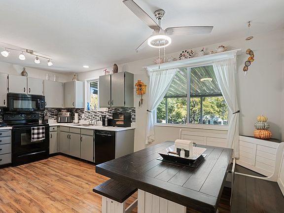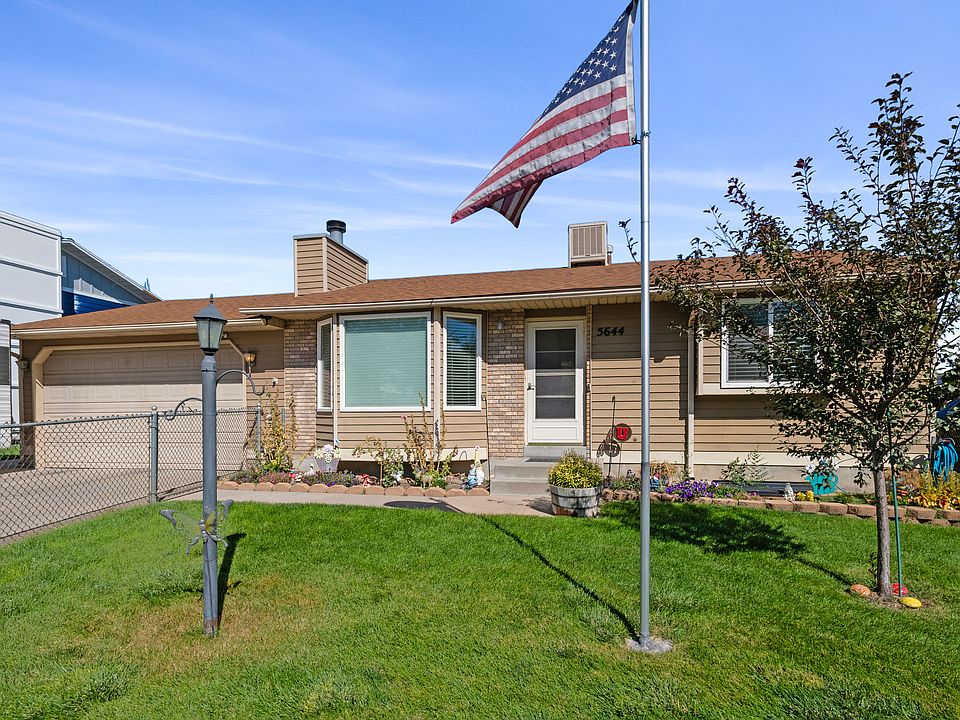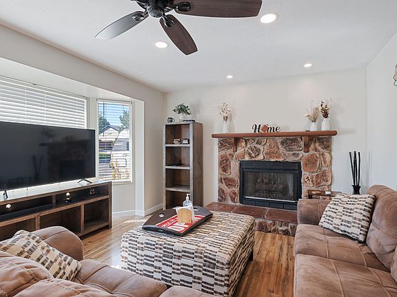 Welcome to this charming 4 bedroom 2 bath rambler with a warm and cozy vibe. Step inside this well cared for home featuring a warm fireplace in the living room. The thoughtful design flows into an inviting kitchen/dining area. Outdoors, you'll love the large yard and covered patio, the ideal spot for entertaining or simply unwinding. Permanent exterior lighting creates a beautiful setting all year round. The attached garage features a second roll-up door to the back yard. With plenty of outdoor space and a cozy atmosphere. This home is ready for you to move in and make it your own!