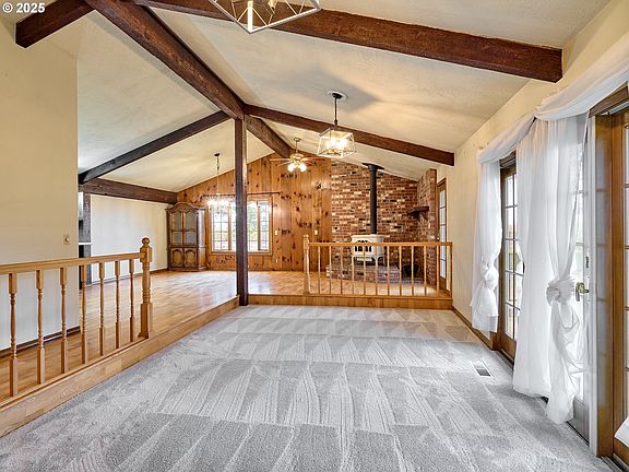 Welcome to this beautiful country home in rural Marion County. A quick drive to I-5 or Hwy 99E for easy commute to Portland and Salem and beyond. This home boasts so much space and storage. Beautiful hardwood floors and brand-new carpet. High Ceiling with open beams in the great room with wood accents throughout. Spacious primary bedroom with walk in closet to include a vanity. Jetted tub and walk in shower. This home has so much to offer including dual HVAC systems due to the home being extra extended. Oversized garage includes a canning station with stovetop and shelves for storage. Circular driveway with concrete walkways that lead around the home to the large back patio with plenty of room to entertain. Water feature within the professional landscaped yard. Room for RV/Boat/Recreational vehicles. Large Shop/Barn with concrete floors & power, extra room w/ storage and work benches. Rolling doors on two sides of the Shop. Chicken Coop area and plenty of room for animals to roam with the fully fenced w/ cyclone fencing. Want to live in a serene area with a beautiful view of the country with established trees, look no more, you found it!