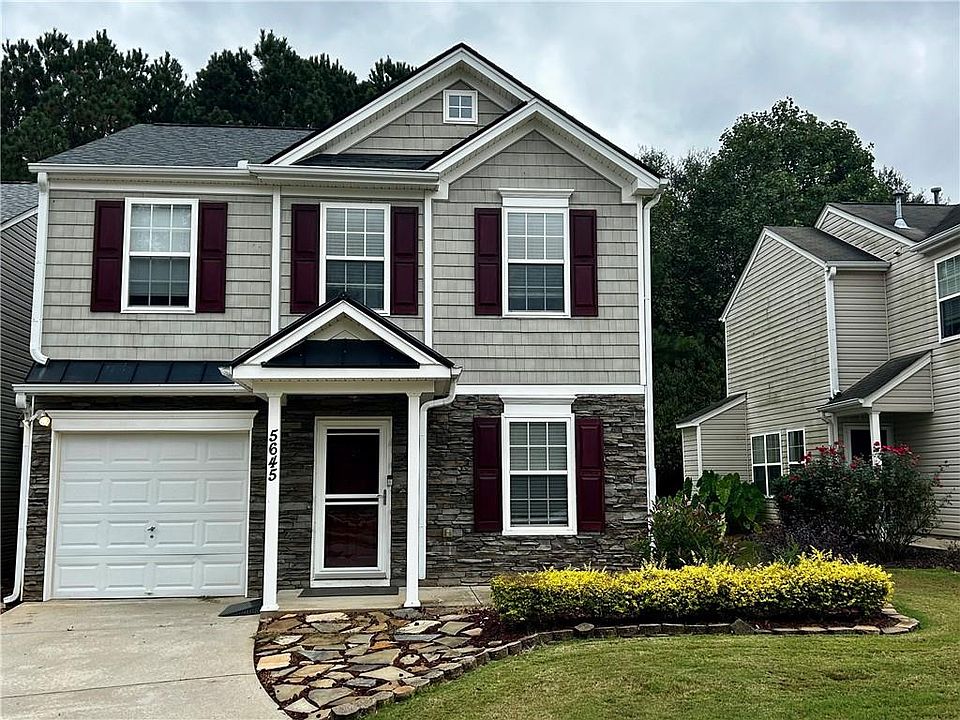 This three bedroom, 2.5 bath home features an open concept. Eat in kitchen with view into family room and large private backyard. Backyard is level and offers great space, along with being fenced. A covered patio is built-in along the back exterior of the home. Spacious countertop space and cabinets. Large master suite with walk-in closet and vaulted ceilings. Master bath and secondary bath have tile floors. Spacious secondary bedrooms and laundry located upstairs for convenience. Located just off Hwy 400, allowing quick access to Atlanta.