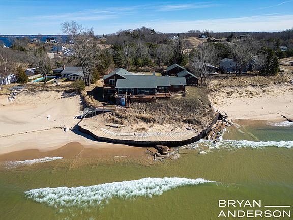 Welcome to 5645 Murray Road on Lake Michigan! This stunning retreat has 150 feet of low bluff frontage offering unparalleled privacy and serenity. The property boasts 2 parcels spread over 2 acres featuring a large home that's been divided into 3 units, along with a guest house on a separate parcel. The three stall garage provides ample storage. The main house was divided into 3 separate units with a total of 5 beds, 5 full baths and 2 half baths. The separate guest house has 2 beds and 2 full baths making the entire property perfect for housing extended family or creating rental income. Immerse yourself in nature and breathtaking views while being just steps away from the tranquil waters of Lake Michigan. This is a rare find for those seeking a tranquil escape with endless possibilities.