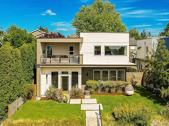 Stunning, modern home in Seaview. Enter to soaring ceilings & open style living. Entertain & cook in the spacious kitchen w gas range. You'll love retreating to the living rm w cozy gas fireplace. Large windows & French doors welcome you to the fully fenced, private back yard w patio + 2 car garage w alley access. Glorious master suite includes walk-in rain shower & walk-in closet. Savor sunsets every night from your master balcony. Wake up to Sound & Mountain views every day. Minutes to parks.