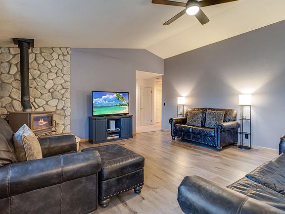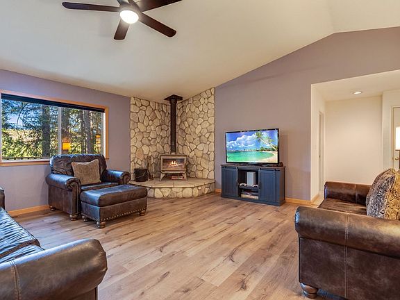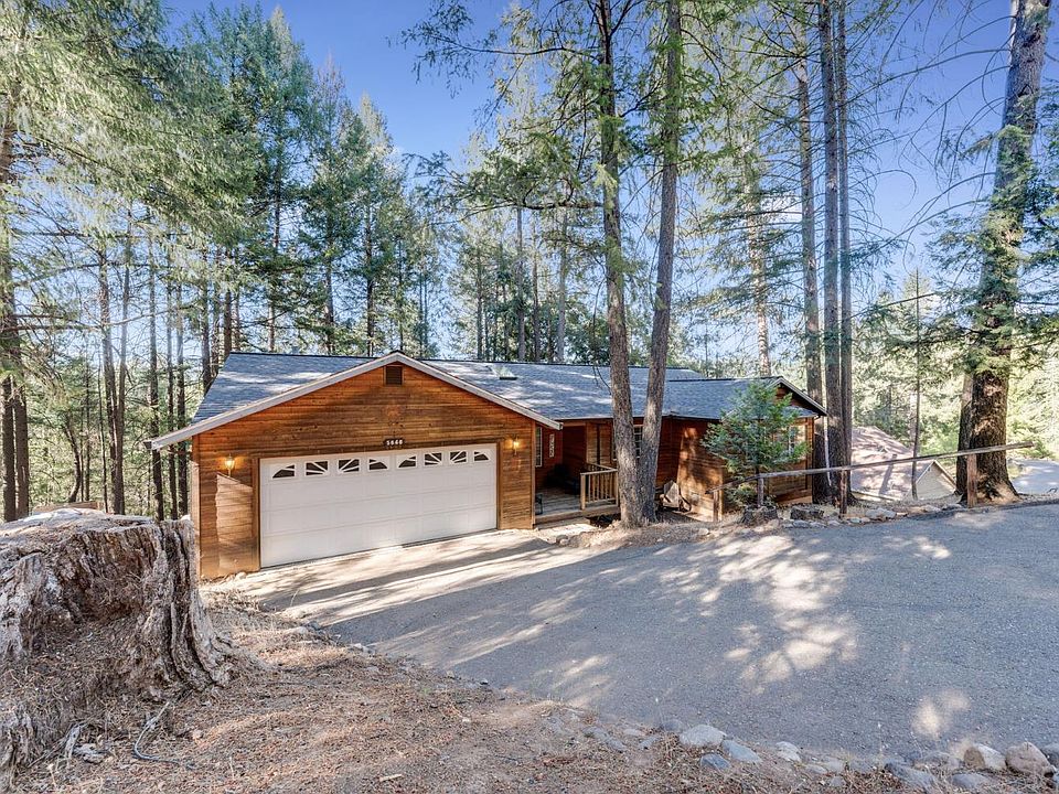 Welcome to a life of peace & pine-scented serenity! This private retreat nestled in the coveted Sierra Springs Community is just 3.5 miles from the shimmering waters of Sly Park Lake, where boating, kayaking, swimming, hiking, biking, and fishing await your adventurous spirit. This charming 3-4 bedroom, 2-bath, approx. 1,900 Sq. Ft. home with attached 2-car garage sits on nearly 3 peaceful, tree-lined acres, blending modern comfort with serene mountain living. Inside, find fresh paint, stylish new fixtures, updated flooring, and a spacious kitchen with granite countertops, perfect for daily living and entertaining. Enjoy morning coffee & sunrises or wine down as you take in the evening sunsets from your private back deck, with expansive wooded views that offer privacy and a postcard-worthy backdrop. Downstairs, a fully finished basement (not included in the square footage) offers endless potential - think income-generating rental, in-laws quarters, rec room, bunk room, or hobby space. All within a desirable HOA featuring two pools, tennis courts, half basketball/pickleball courts, and a private clubhouse offering social and recreational amenities just moments away. Whether it's your forever home, a seasonal getaway, or an investment, this turnkey property delivers it all!
