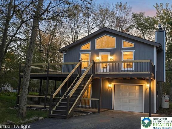 This stunning 4-bedroom, 2.5-bath retreat offers: - A main-level primary suite with a custom shower and closets - A convenient lower-level laundry room - A gourmet kitchen with natural wood countertops and brand-new appliances - A cozy gas-burning fireplace and a second modern electric fireplace with decorative granite - Brand-new windows for abundant light and breathtaking views Designed with premium materials, this home exudes elegance and sophistication. Highlights include: - 4 spacious bedrooms - 2.5 luxurious bathrooms - High-end finishes and custom closets - New appliances and windows - Warm, inviting fireplaces Discover the beauty of Pocono living in this exceptional home. Schedule your showing today!