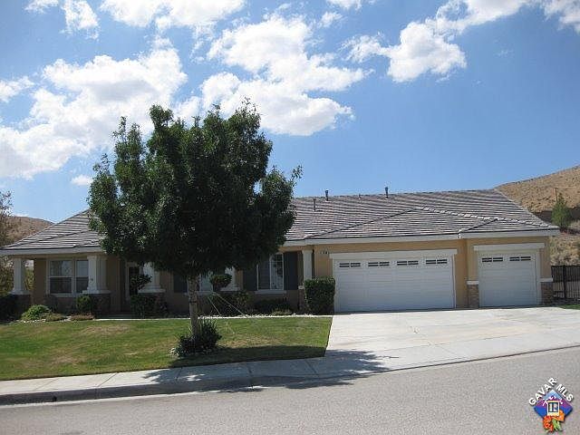 Located on a cul de sac in desirable West Palmdale sits this 2004 yr. built New West(builder)single story 5bd+3ba 3344 sq.ft home on over a 1/2 acre lot. Open floor plan offers formal dining and living room with wood flooring, large kitchen with tile flooring, corian counter tops, multiple cabinets, stainless steel appliances and recessed lighting, dining room with ceiling fan and built in shelving for use of a buffet counter or desk. Family room with ceiling fan and a fireplace for those winter nights, large laundry room has shelving, all bedrooms are spacious, Master bedroom has two walk in closets, Master bath offers dual vanity sinks, garden tub and stand alone shower. The back yard boasts a gorgeous view of the surrounding mountains, a covered patio, mature landscaping and room to create your own little piece of paradise! Close to schools, shopping and parks. A true must see