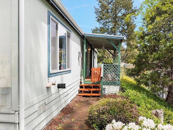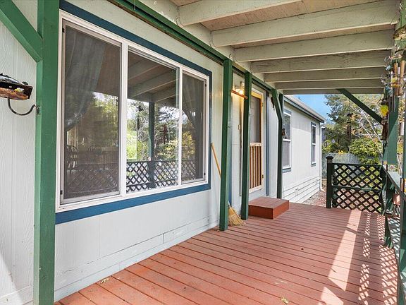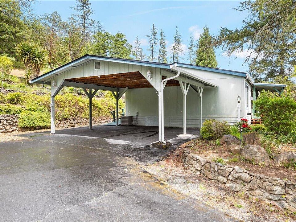 BACK ON THE MARKET AT NO FAULT OF THE PROPERTY. Nestled at the top of the community surrounded by trees and wildlife this 1512 sq ft home features breathtaking mountain views from every window. 3 bedrooms, 2 bathrooms, 2 living spaces and a large/open kitchen. Master bedroom is spacious with a walk-in closet, walk-in shower and a large linen closet. Upgrades in 2023 include new roof, new skylight, raised toilets, handrails in bathroom and a new washer and dryer. Outside you'll find a large carport with enough space for 2 large vehicles (new roof), a beautiful terraced garden with a stone pathway plus a large storage shed. Located in the highly desirable Rogue River Mobile Estates, a 55+ community. Park fees are just $599 per month (effective 6/1/24) and includes common area maintenance, water, sewer and trash service. Park also features RV parking with a RV dump. Pets allowed, under 25 pounds. Centrally located just half a mile to Rogue River and about 7 miles to Grants Pass