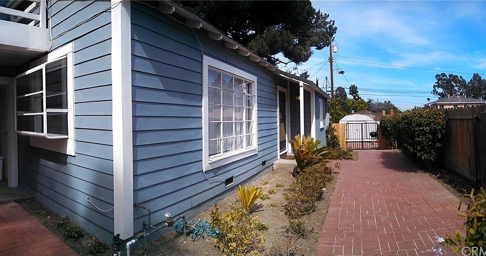 Enter the property though a private gate entry to front landscaped patio, the front door welcomes you into the halfway that connects to the stunning living room with real hardwood floors, built-in storage, a brick fireplace and beautiful vaulted ceilings. The living area has great natural light a large window facing the patio and a garden window for your green thumb! The dining area has a built in corner cabinet next to side dutch door that leads to the Laundry room, garage and private patio. The kitchen has orginal cabinets that has dual colored new paint, new backsplash (to be installed soon) and a beautiful brass range hood. The bathrom has a a large corner vanity with a bathtub shower combo. Both bedrooms have orginal built-in closet and cabinets with a direct access to the backyard patio. The large backyard features a large two - tier deck, brick patio, lawn and mature fruit trees!