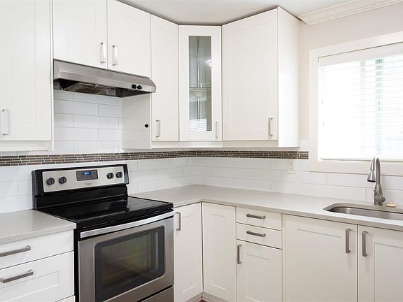 Quartz countertopsStainless steel appliancesLarge windowsExtended deck