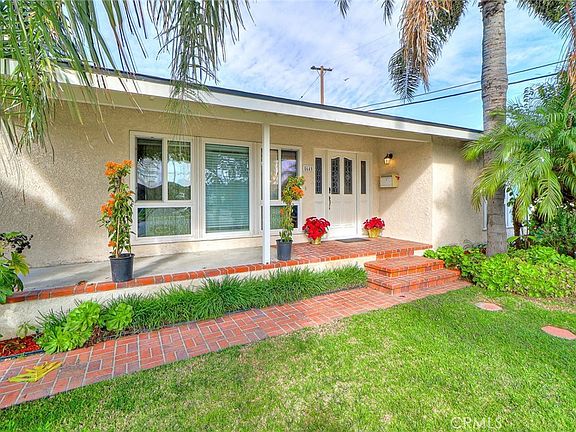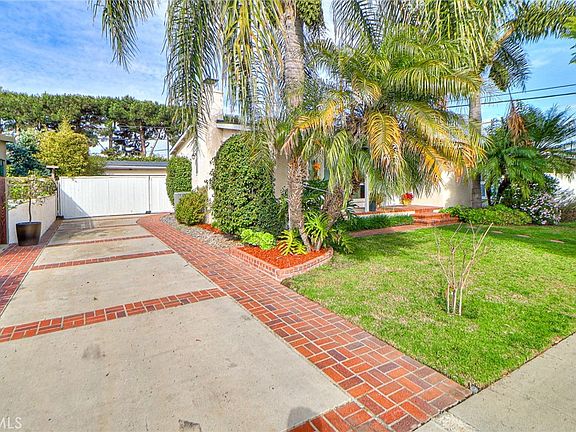 Welcome to this stunning 3-bedroom, 2-bathroom home in the sought-after Los Altos neighborhood of Long Beach! Move-in ready and featuring an open floor plan, this home is designed to impress even the most discerning buyers. As you step onto the charming front porch, the classic brick entryway and elegant front door create an inviting first impression. Inside, gleaming hardwood floors flow throughout, complementing the light-filled living room with full-length windows that bring the outdoors in. The spacious kitchen is thoughtfully designed with Corian countertops, a full backsplash, a 5-element range top, built-in microwave, and dishwasher. A convenient pass-through window connects the kitchen to the dining area, which features a sliding glass door leading to the backyard. A separate laundry room with a sink and cabinetry is located adjacent to the sizable primary bathroom, offering easy access to the backyard and pool area. The primary bedroom boasts double French doors that open to a view of the pool and lush tropical landscaping. The two hallway bedrooms share a full bathroom with a Jacuzzi tub for ultimate relaxation. Step outside into your private tropical oasis! The heated Pebble Tec pool and spa have been recently upgraded with smart features and a new heater.  A tall privacy gate separates the long driveway from the backyard and the detached 2-car finished garage, which offers additional storage space. Conveniently located near shopping centers, parks, golf courses, and outdoor recreation, this home is less than 2 miles from CSU Long Beach and just 4 miles from the beach. Commuters will love the easy access to 405 and 605 freeways, as well as the proximity to Long Beach Airport for effortless travel.