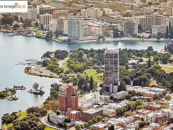 Welcome to Park Bellevue's newest panoramic Lake Merritt view opportunity! Enter the open light filled great room with Kitchen, Living Room and Dinning all with panoramic views. Hardwood floors, custom cherry cabinets and granite counter tops add to the elegance. Primary bedroom has panoramic Lake Merritt and downtown Oakland views. Excellent closet space and custom primary bathroom with shower over tub are a highlight. The guest bedroom is set up as an office now but is easily turned back into a bedroom. This is an excellent pricing opportunity to purchase a luxury condo with an excellent view! In addition, you get Park Bellevue's panoramic view pool and deck, sauna, fitness center, club room and 24 hr securtiy. This is luxury living at its best!